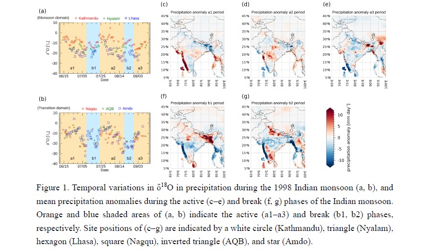 Kurosaki, Y., A. Yatagai, and A. Sugimoto, 2025: Isotopic signatures in precipitation over the southern and central Tibetan Plateau controlled by active and break phases of the Indian monsoon.