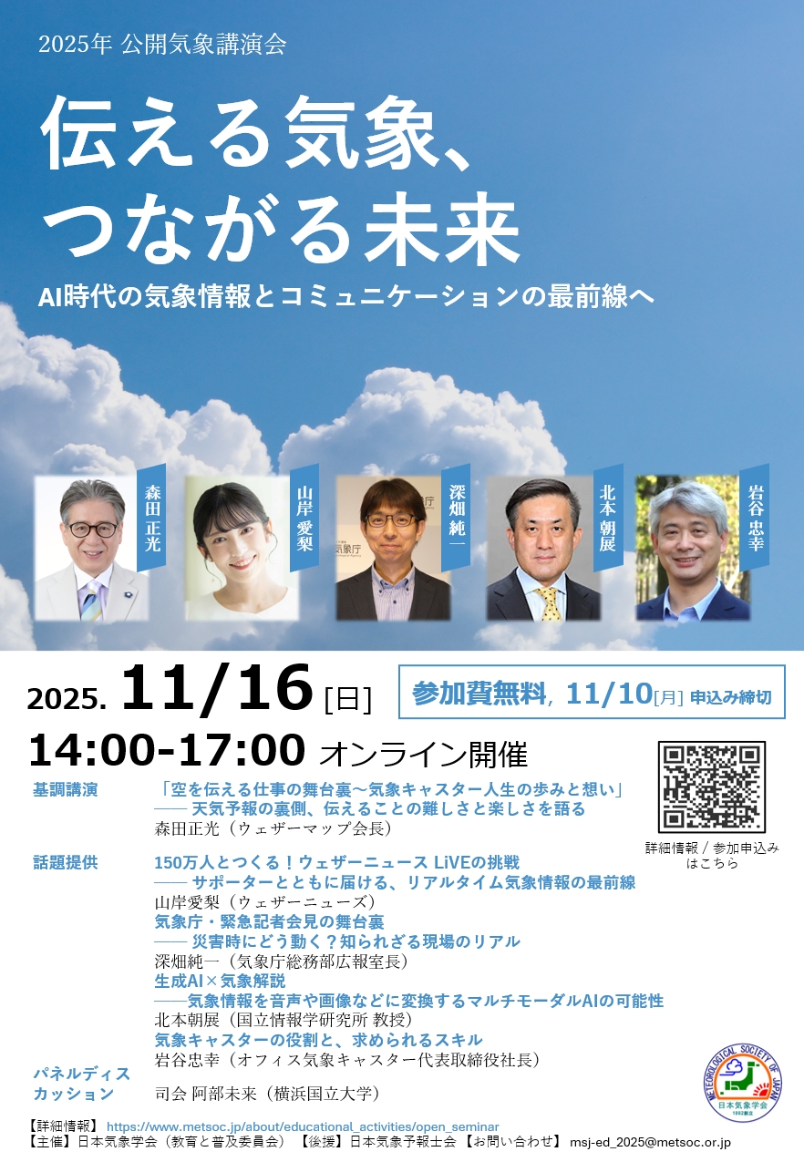 問合せ先:日本気象学会 教育と普及委員会 msj-ed_2025[at]metsoc.jp([at]は@にしてください)