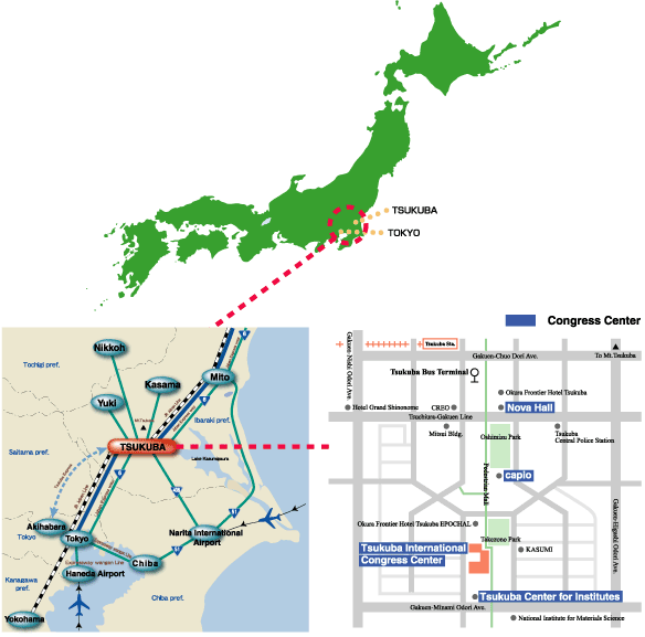 TransportationTravel arrangements should be made individually. When arriving at Narita International Airport, convenient express bus transportation is available directly from Narita to Tsukuba by the Keisei Express Line. For further information, please visit following sites.